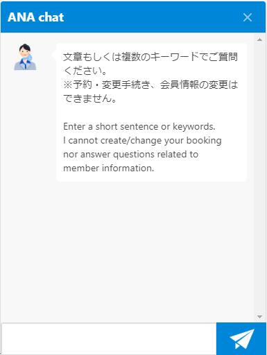 The ANA chatbot cannot make ticket reservations, cancel or change reservations, or register or change ANA Mileage Club member information.