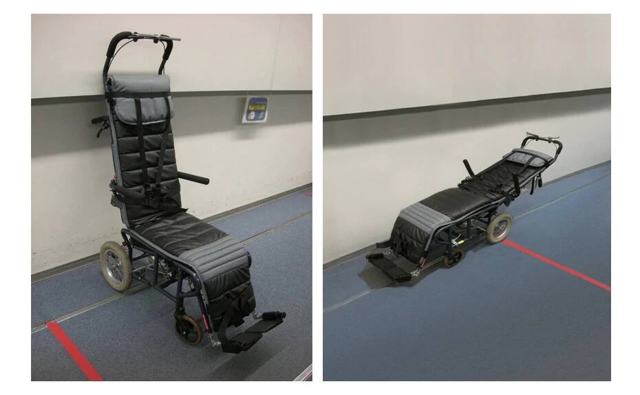 Assisted stretchers are used at airports at which passenger boarding lifts or wheelchair stair lifts are not available or equipped.