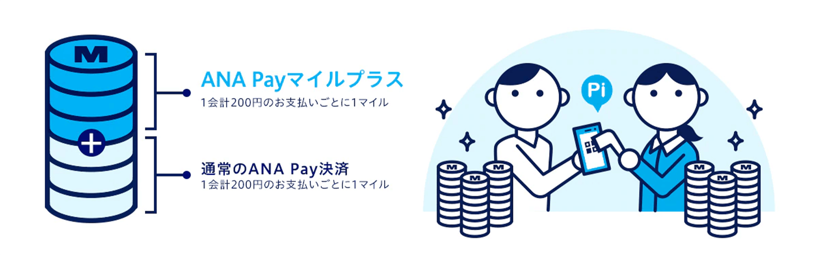 ANA Payでのお買いもので積算されるマイルとは別に、お買いもの金額に応じたマイルが自動的に積算されます。