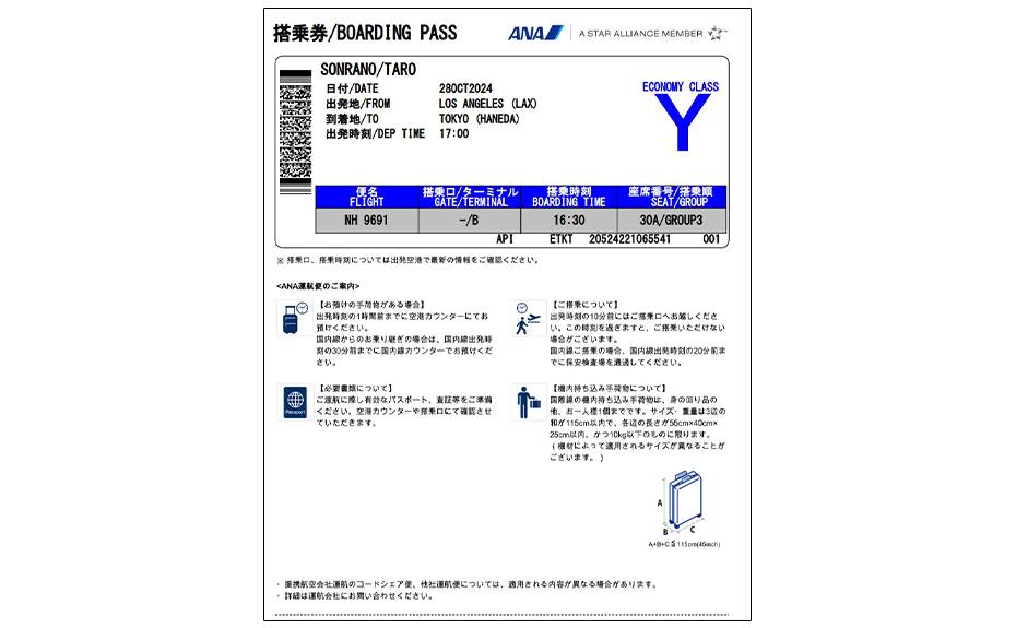 自動チェックイン機・空港カウンターで発行されるeチケットお客様控は以下のデザインとなります。