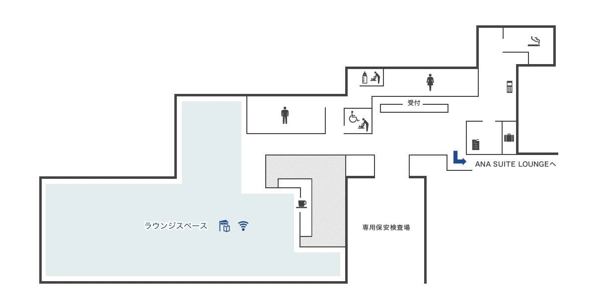 ラウンジに直結する専用保安検査場をご利用いただけます。ラウンジ内には快適にお過ごしいただけるよう各種ビジネスサポート設備や多目的トイレ、授乳室、おむつ交換台など様々な設備をご用意しています。