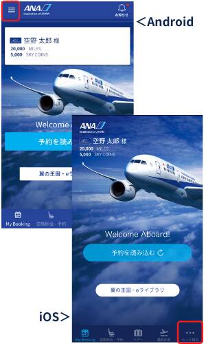 ANAアプリを起動し、