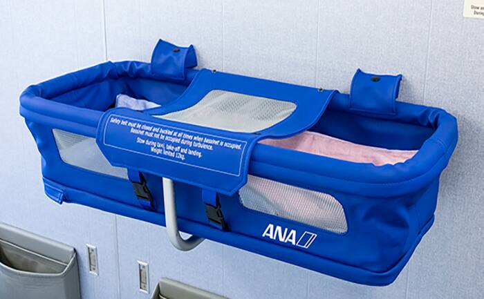 お座席をご利用にならないお子様用に、機内に取り付けるベビーベッドの貸し出しを行っております。
