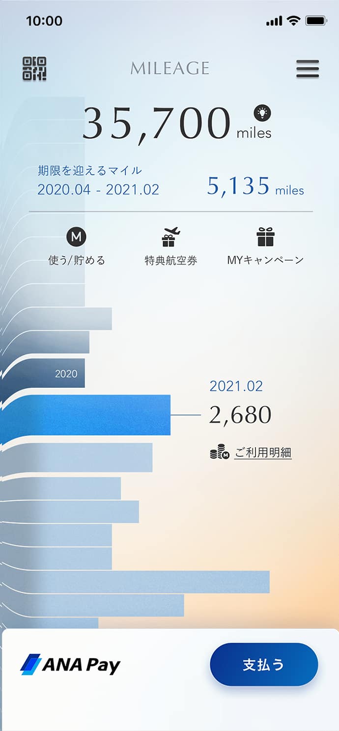 アプリ内では、マイルの残高や有効期限を確認いただけるほか、マイルが貯まる・使えるサービス情報満載。